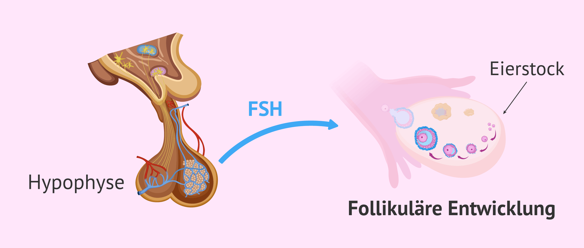 FSH wird von der Hirnanhangdrüse sezerniert und übt seine Funktion auf den Eierstock aus. Daher wird im Laufe der Jahre bei Frauen mehr FSH-Hormon für die Eizellreifung benötigt.