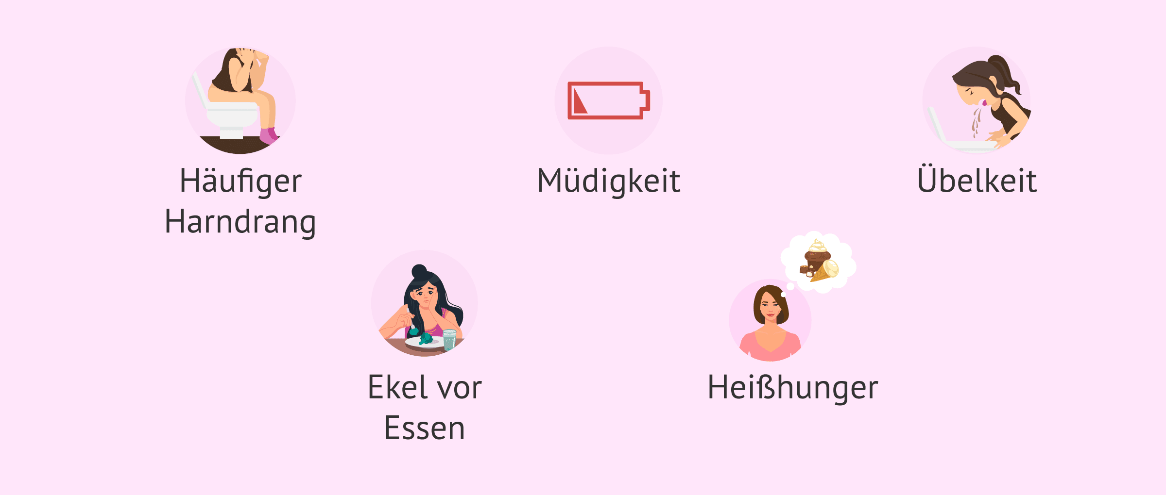 Zusammen mit der Einnistungsblutung sind andere typische Schwangerschaftssymptome die Müdigkeit, die Menstruationsverzögerung (Ausbleiben der Periode), das Auftreten von Übelkeit, der Heißhunger (Antojos), etc.