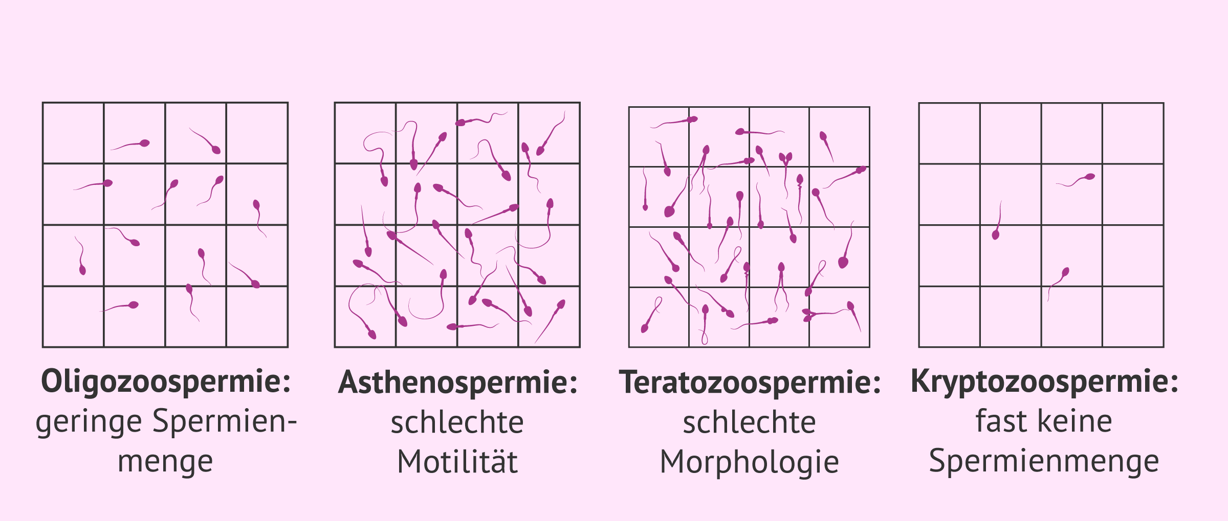 - geringe Konzentration von Spermien im Ejakulat Nach Angaben der Weltgesundheitsorganisation kann es bei einer Spermienzahl von weniger als 15 Millionen zu Problemen beim Erreichen einer natürlichen Schwangerschaft kommen.