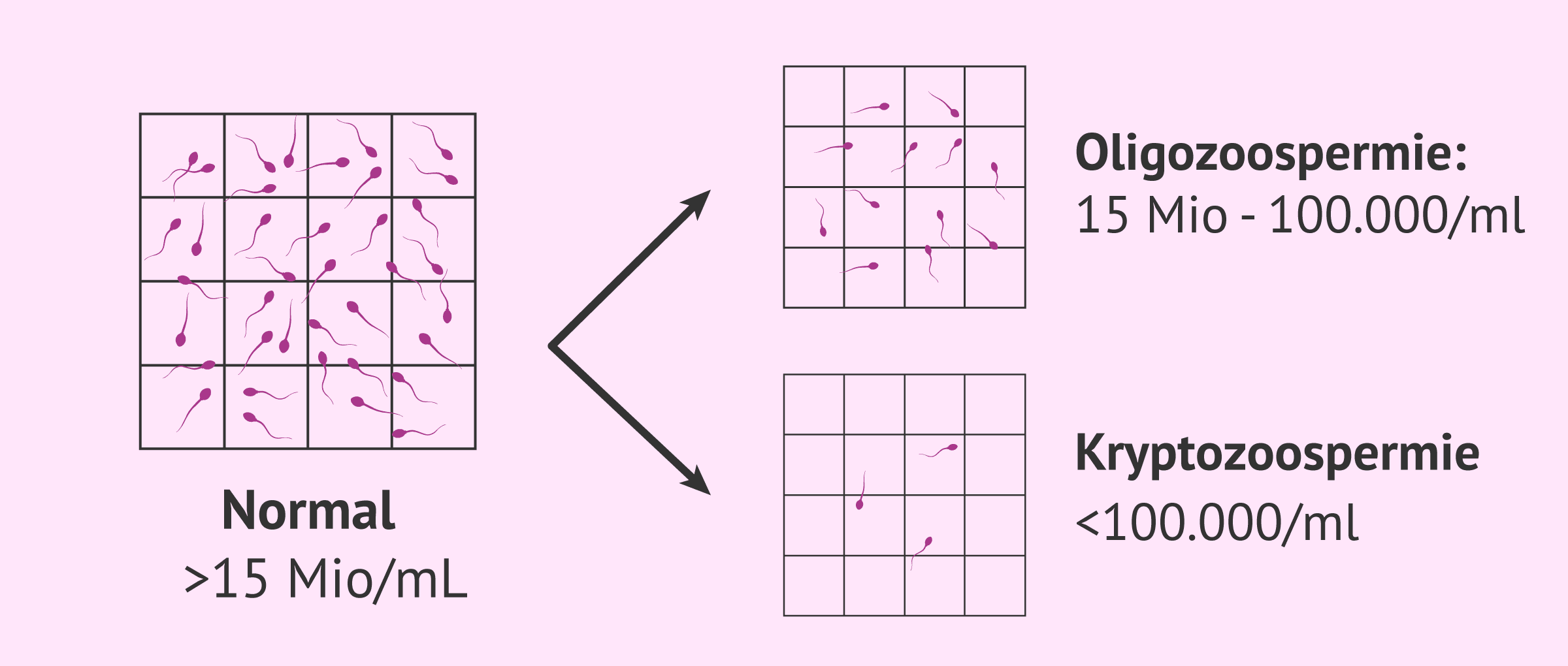 Wenn die Anzahl der Spermatozoen unter 100.000 liegt, wird die Samenveränderung als Kryptozoospermie bezeichnet.