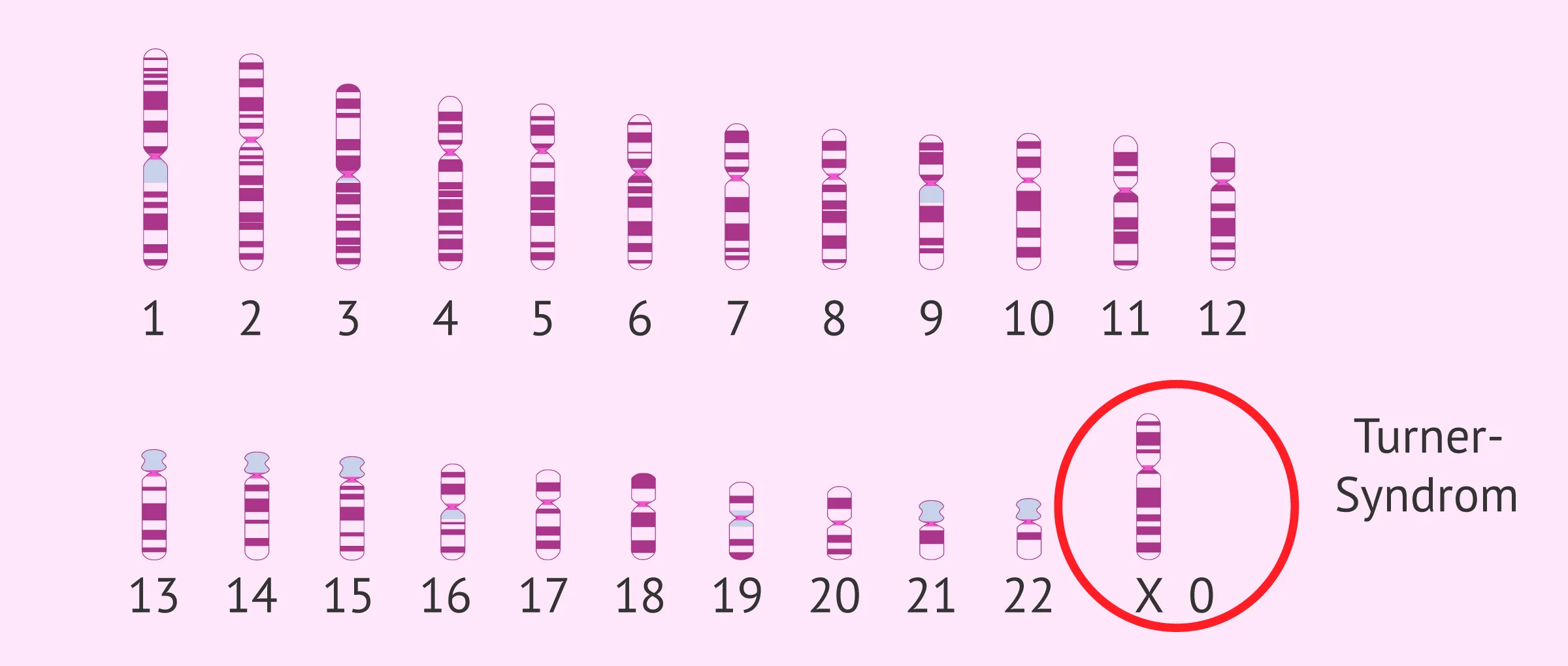 Normalerweise ist der Karyotyp bei der Frau 46,XX und beim Mann 46,XY. Beim Turner-Syndrom ist der Karyotyp 45,XO.
