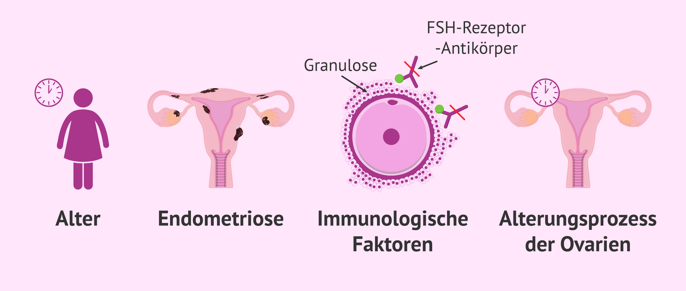 Ein geringes Ansprechen der Eierstöcke auf die Medikamente, die in der Phase der Follikelstimulation bei IVF-Behandlungen eingesetzt werden, kann eine Folge des fortgeschrittenen Alters der Frauen, einer geringeren Eierstockmasse aufgrund von Endometriose, Autoimmunprozessen oder einer Alterung des Eierstocks sein.