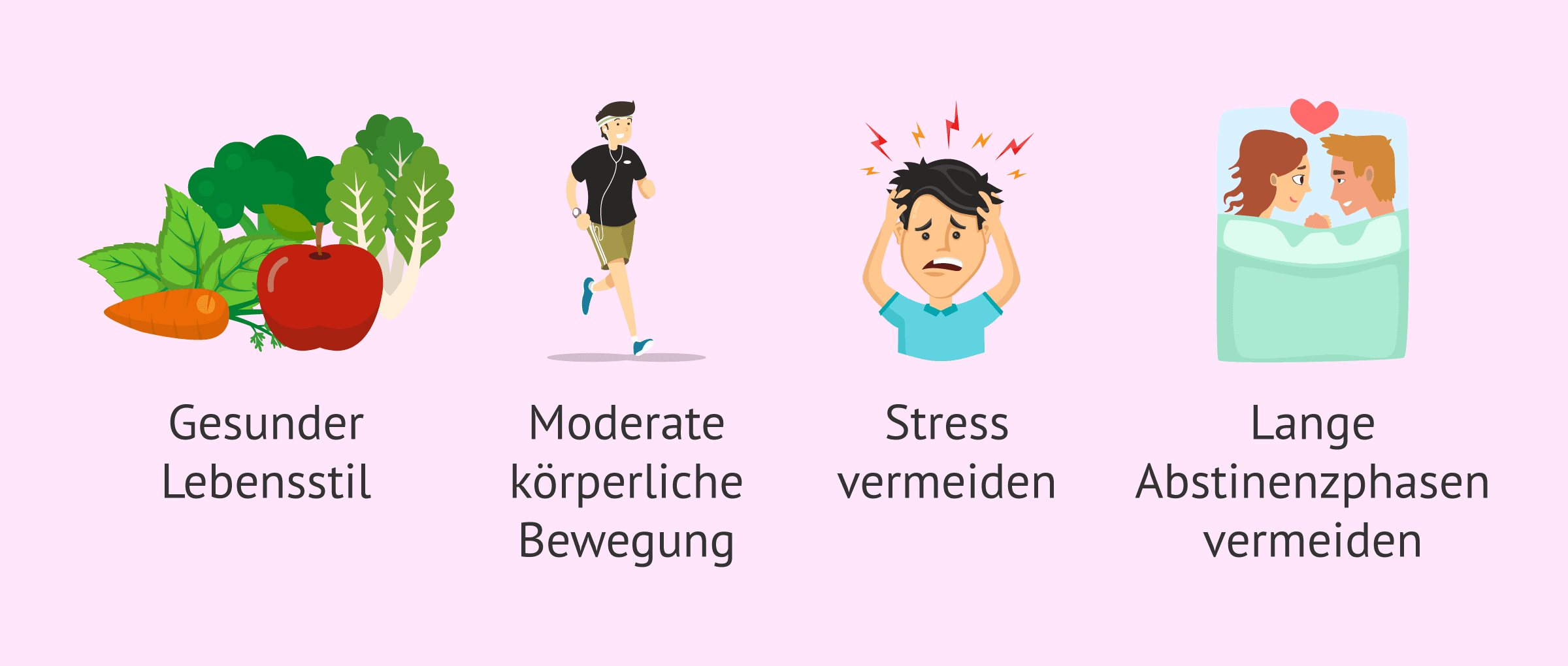 Darüber hinaus trägt moderate körperliche Bewegung zur Verbesserung der Spermienqualität bei. Die Vermeidung von Stress und langen Phasen sexueller Enthaltsamkeit sind ebenfalls Empfehlungen zur Steigerung der Fruchtbarkeit des Mannes.