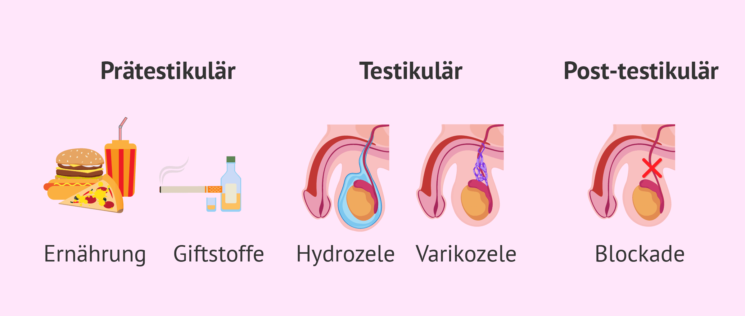 Vor allem schlechte Lebensgewohnheiten, Alkohol- und Drogenkonsum sind die Ursachen für die Beeinträchtigung der Spermienproduktion vor dem Hoden.