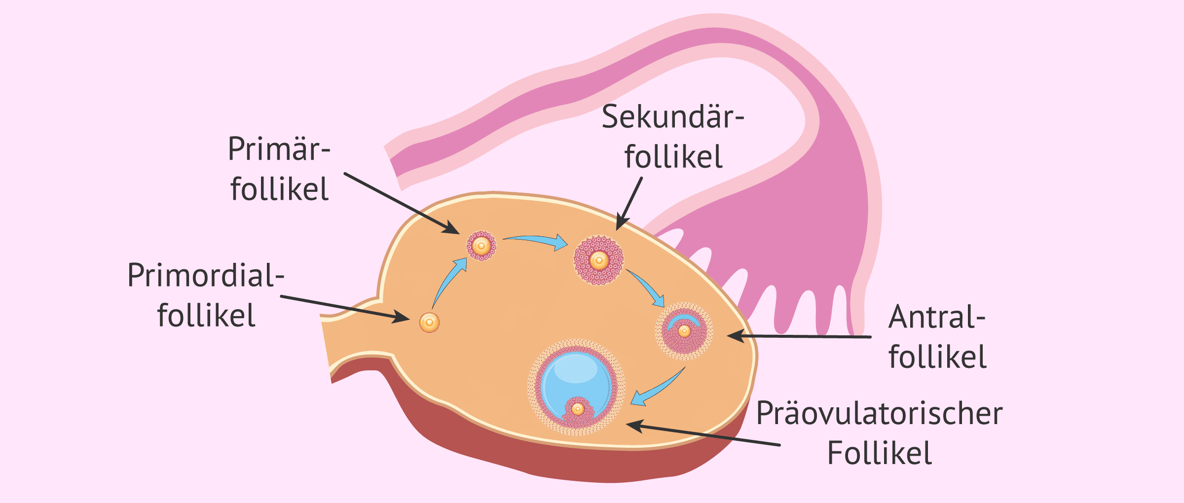 Ovarialfollikel sind Strukturen, die die Eizellen in den Eierstöcken enthalten. Diese Follikel durchlaufen verschiedene Reifungsstadien, die in der Abbildung dargestellt sind.