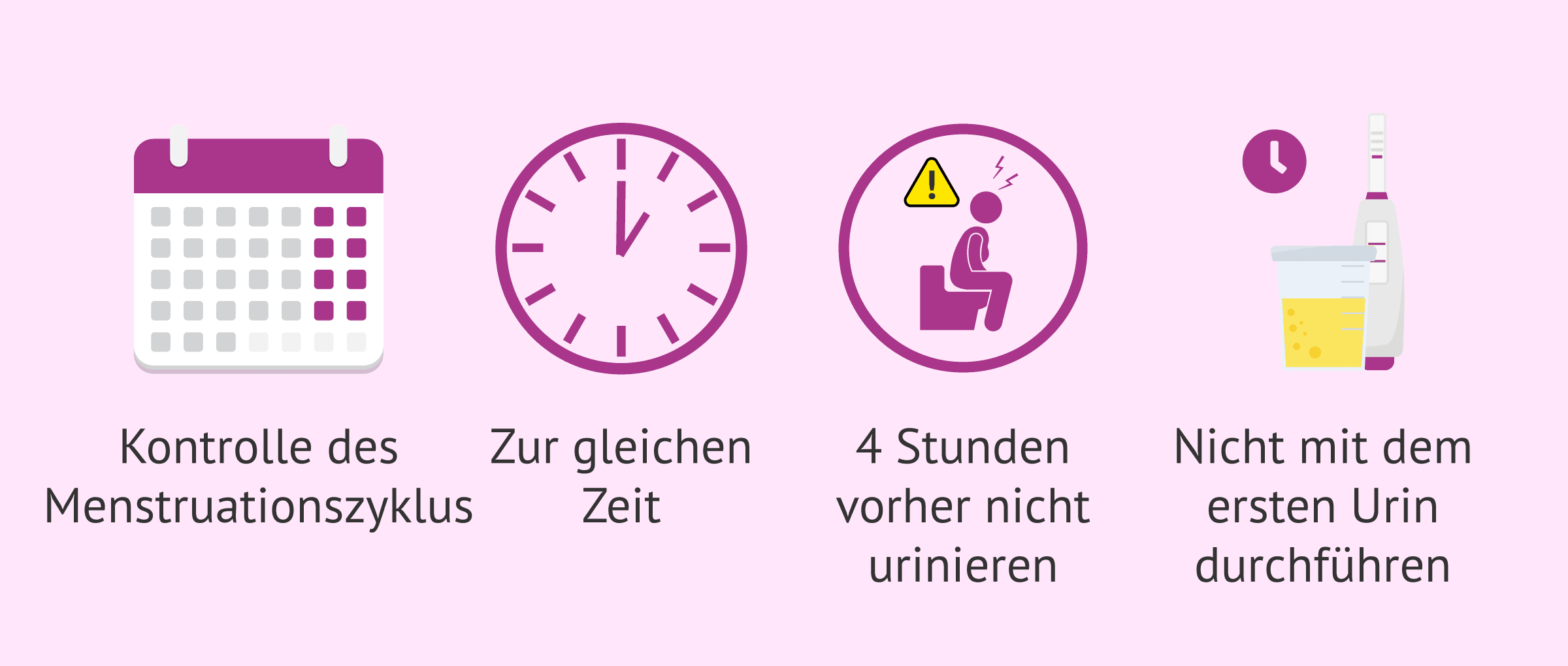 Wenn eine Frau einen Ovulationstest durchführen möchte, ist es wichtig, dass sie ihren Menstruationszyklus kontrolliert, da sie so unnötige Tests vermeiden kann, wenn noch keine Möglichkeit für einen Eisprung besteht. Außerdem ist es ratsam, den Ovulationstest immer zur gleichen Zeit und vorzugsweise morgens als Erstes durchzuführen, da der erste Urin weniger verdünnt ist.